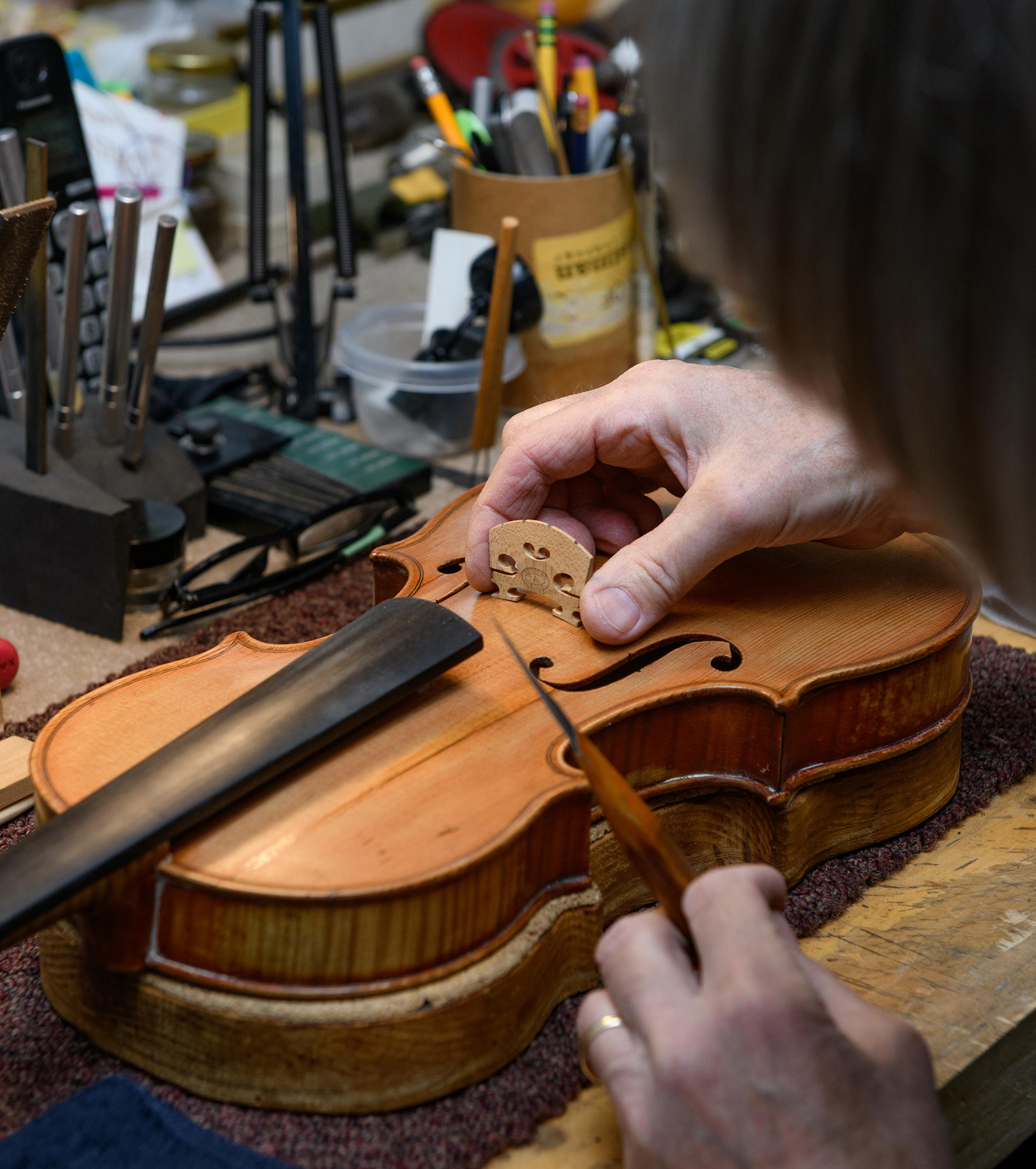 All our maintenance and repair services, from bow rehairs to full instrument restorations, are offered in-shop at our location in Peace Dale, Rhode Island. Our craftsperson, Mr. Stephen A. Beekman, is a skilled luthier with decades of experience caring for violin-family instruments.